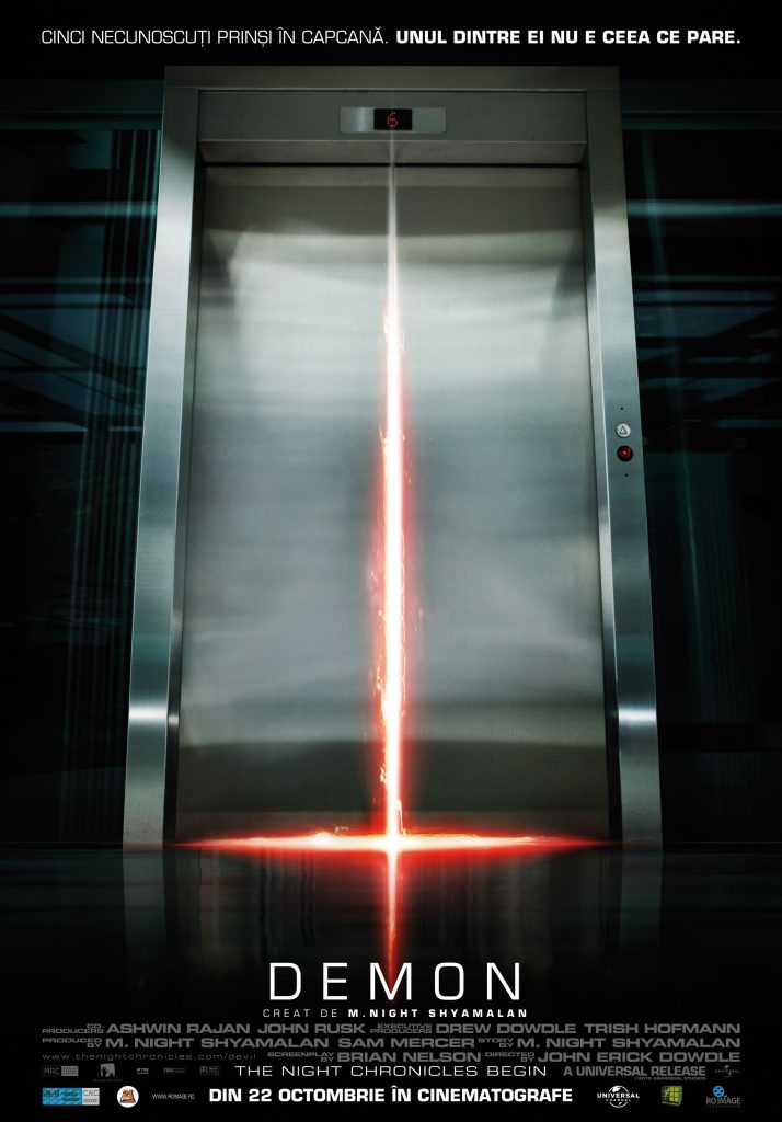 Regizat de John Erick Dowdle (Quarantine, The Poughkeepsie Tapes), după un scenariu de Brian Nelson (Hard Candy, 30 Days of Night) şi un story de Shyamalan, DEMON are în distribuţie pe Chris Messina (Julie & Julia), Logan Marshall-Green (Brooklyn’s Finest), Geoffrey Arend (500 Days of Summer), Bojana Novakovic (Drag Me to Hell), Jenny O’Hara (Mystic River), Bokeem Woodbine (The Last Sentinel) şi Jacob Vargas (Death Race).